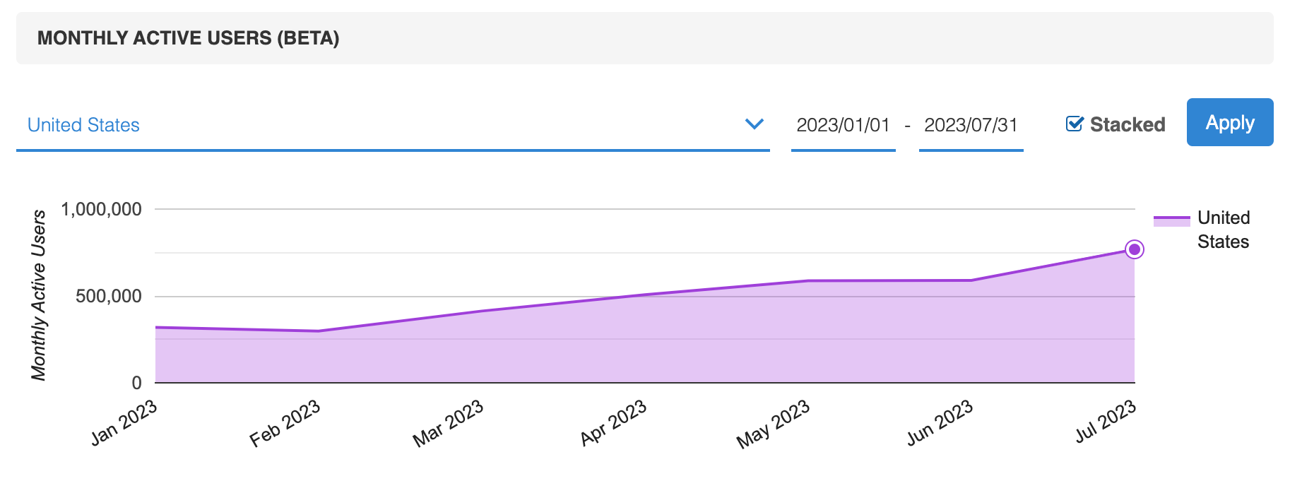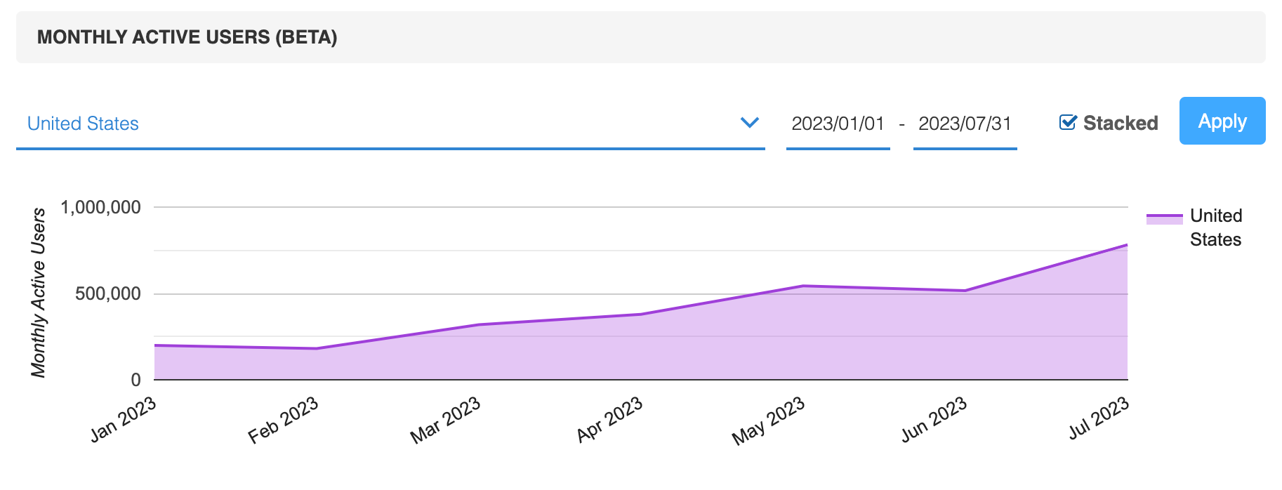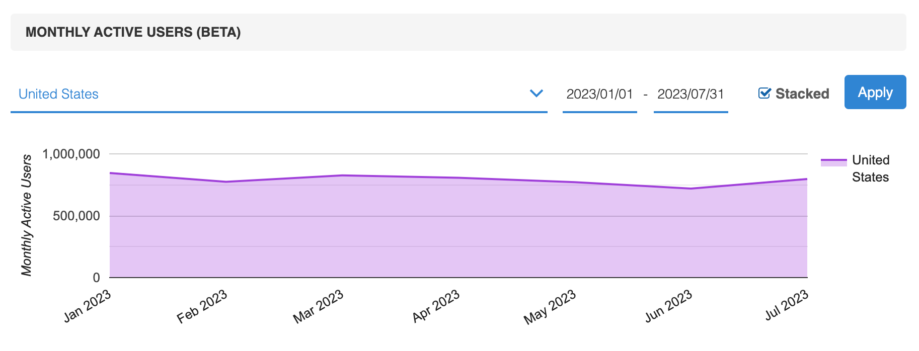 It’s always important to take download trends with a grain of salt, and it’s not as though falling from 149,787 monthly downloads to 104,779 signals doom for Klarna. Indeed, their Android MAUs have been pretty solid in the United States, with nearly 800,000 users logging into the app in July: