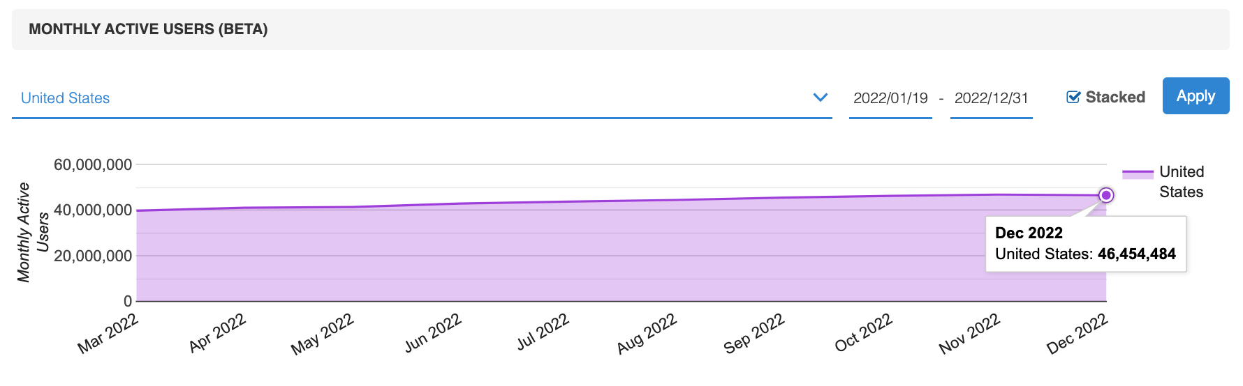 Finally, it’s worth pointing out that TikTok’s Android user base has grown pretty significantly over the past few months. According to our data, the Android version of the app had 46,454,484 MAUs in December 2022, up from 39,683,619 MAUs in March 2022. It’ll be interesting to see if this continues through January, but early returns suggest the ban has had a negligible impact on usage.