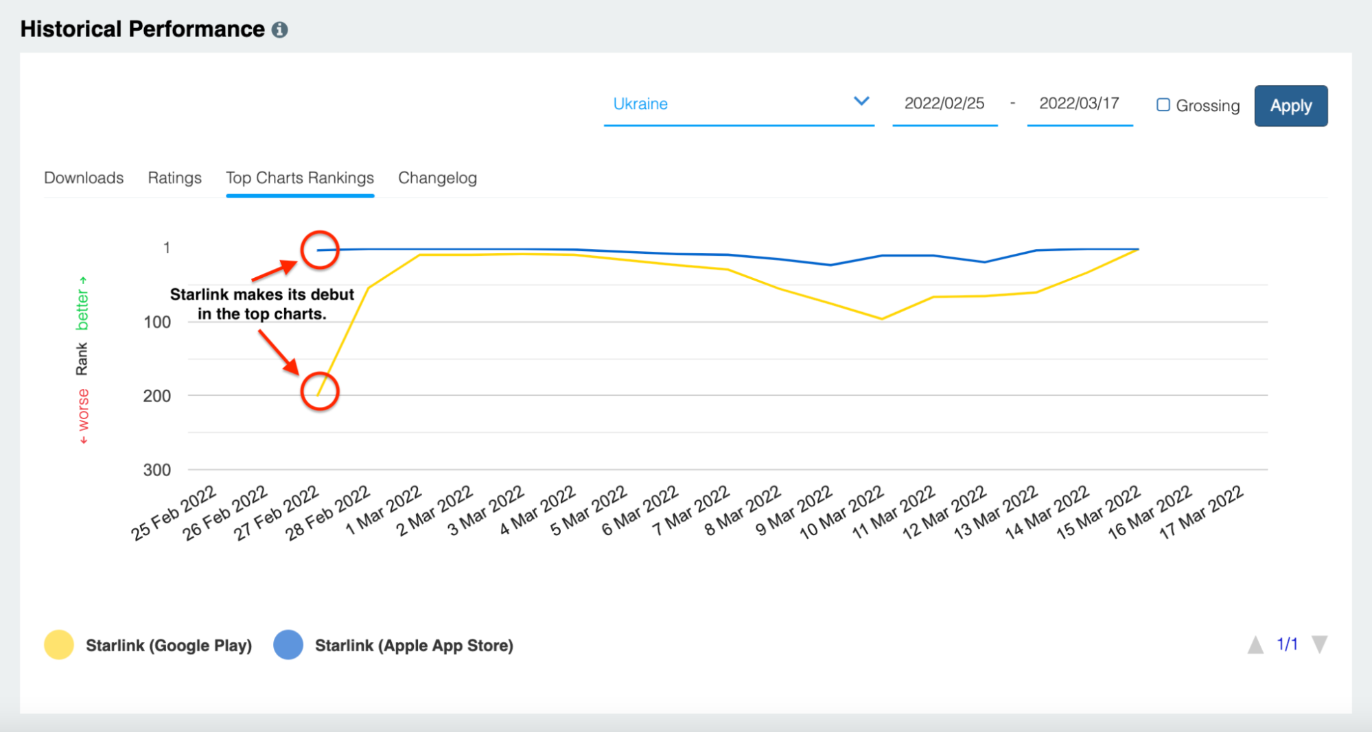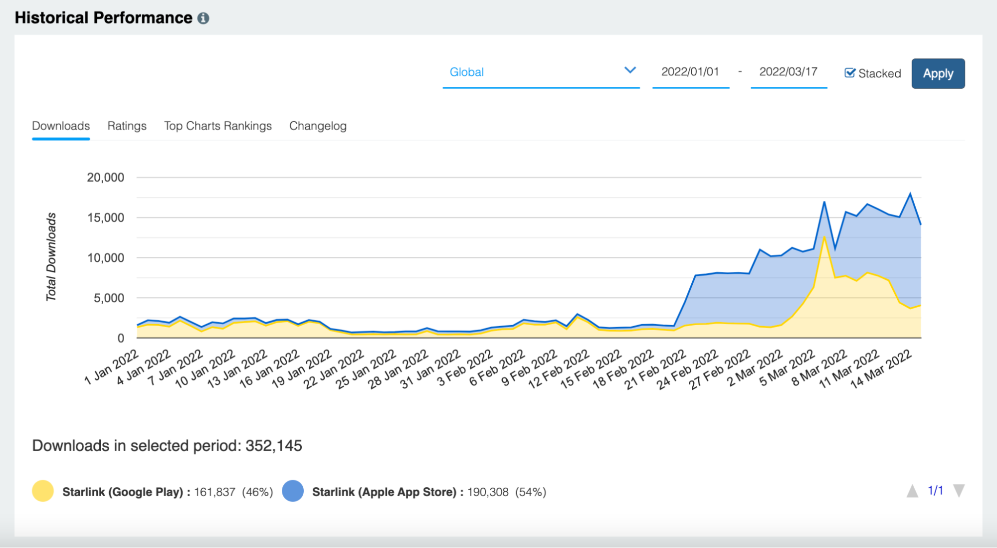 In this article, we use our App Watchlist to analyze the meteoric rise of Starlink across Ukraine. In particular, we examined downloads and top chart rankings for the iOS and Android versions of the app.