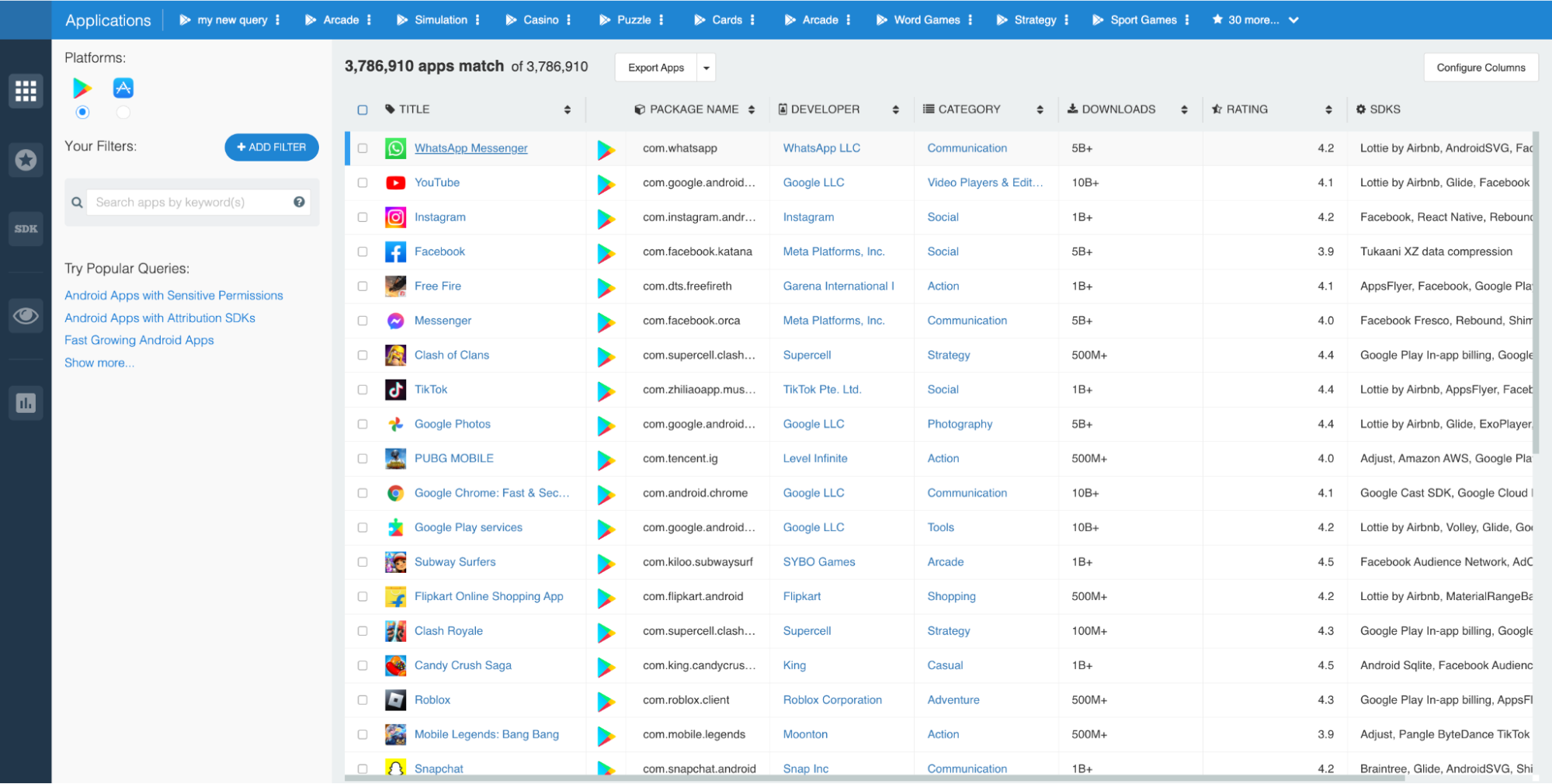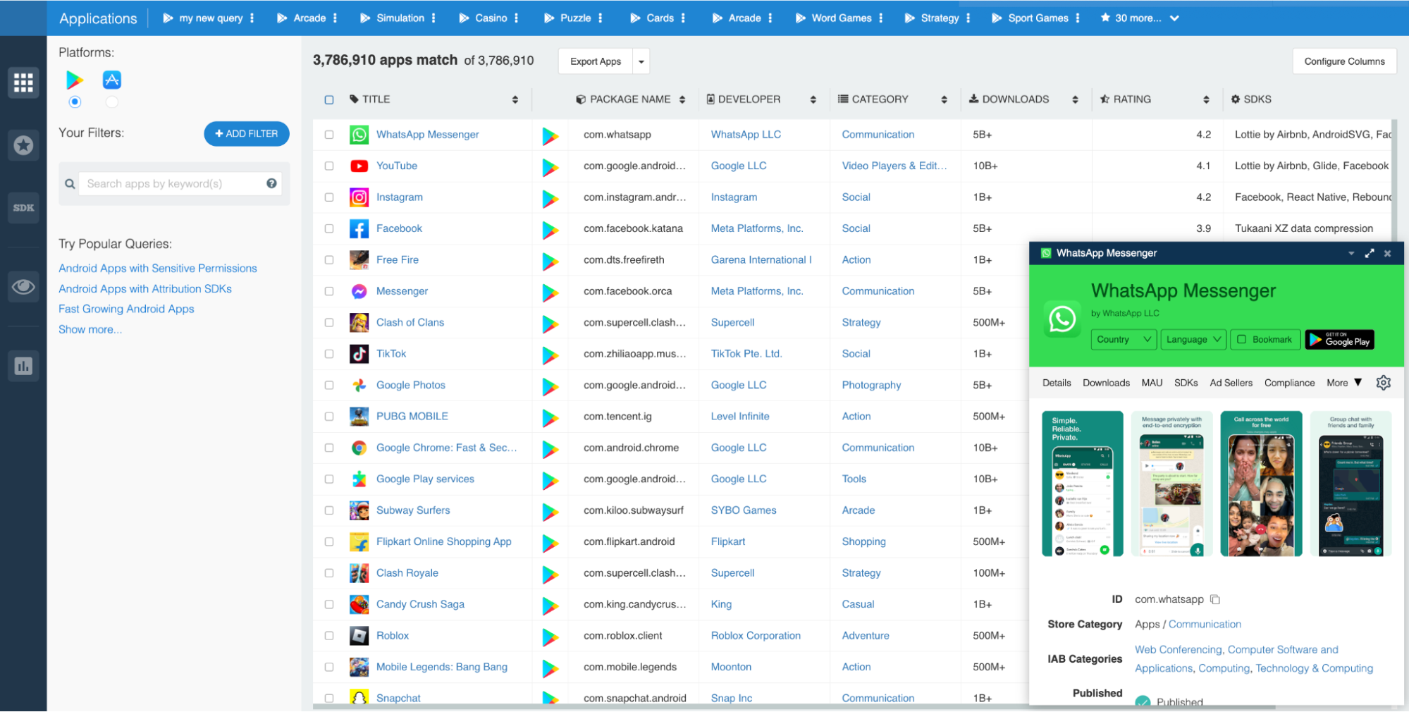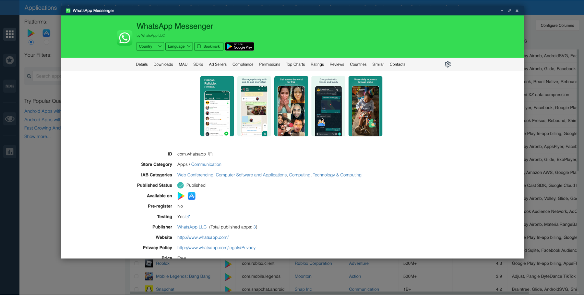 To begin, launch the Explorer and CLICK on the app you’d like to research. In this case, we went with WhatsApp Messenger: