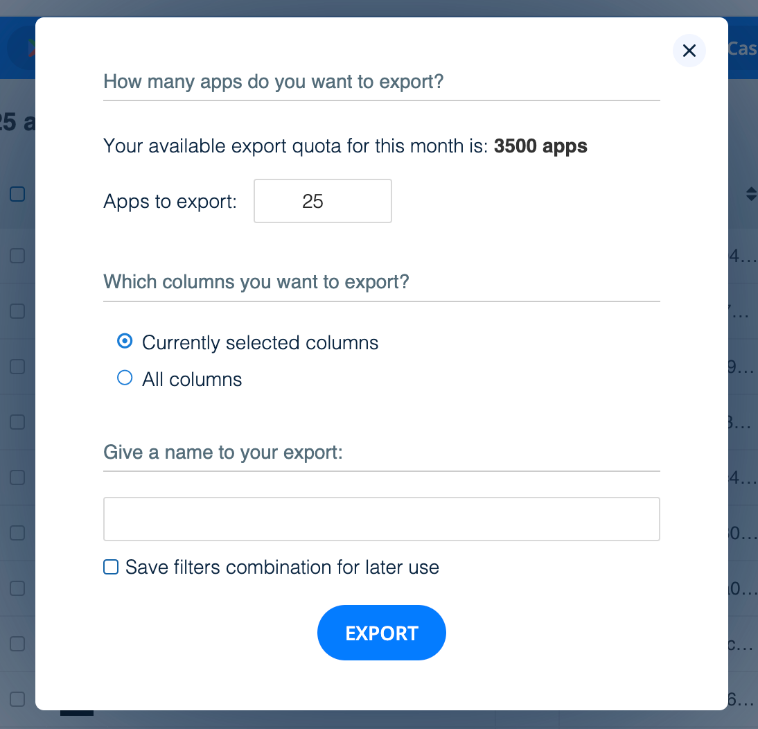 When you have everything set, it’s time to download! To do this, click Export Apps at the top of the page: