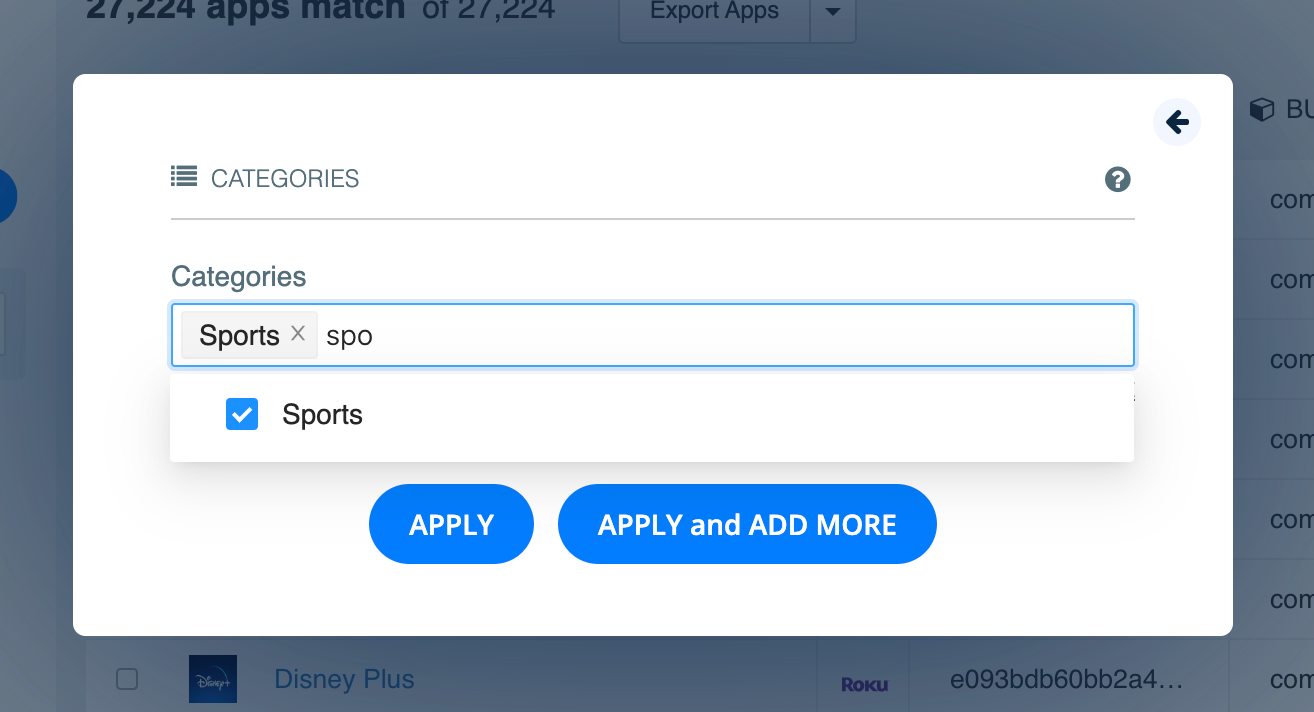 In this case, let’s assume that these alcohol brands want to advertise to sports fans. You can refine your search to find apps in Roku’s Sports category: