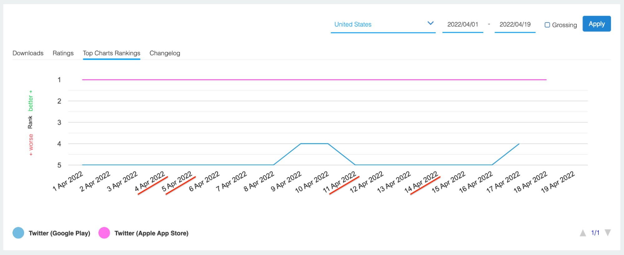 Next, let’s look at the iOS charts from April 5th: